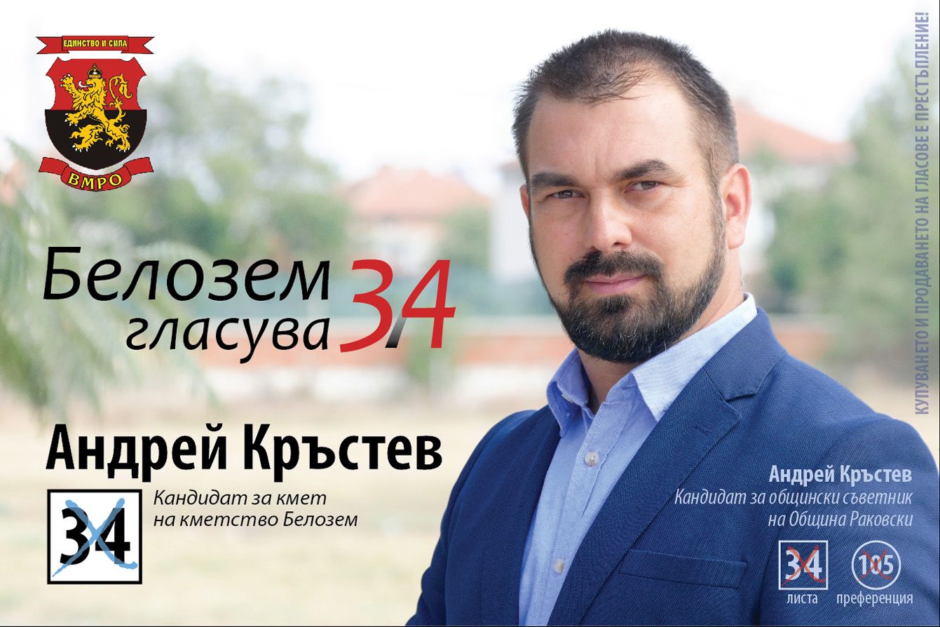 Среща на Андрей Кръстев със зам. министъра на МОСВ Николай Кънчев Кандидата за кмет на с. Белозем и кандидат за общински съветник Андрей Кръстев, показва, че една предизборна кампания може да се гради не само върху обещания, но върху реални факти и действия. Основни проблеми Виж още …